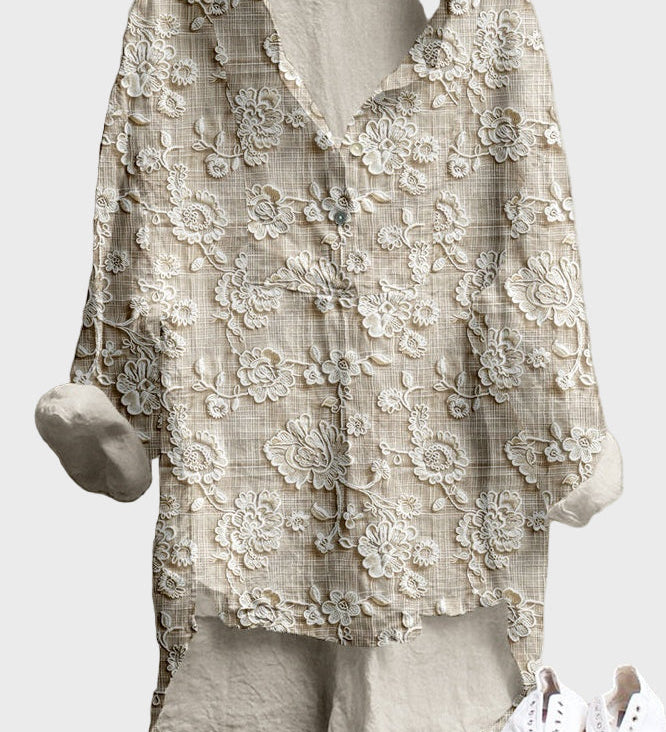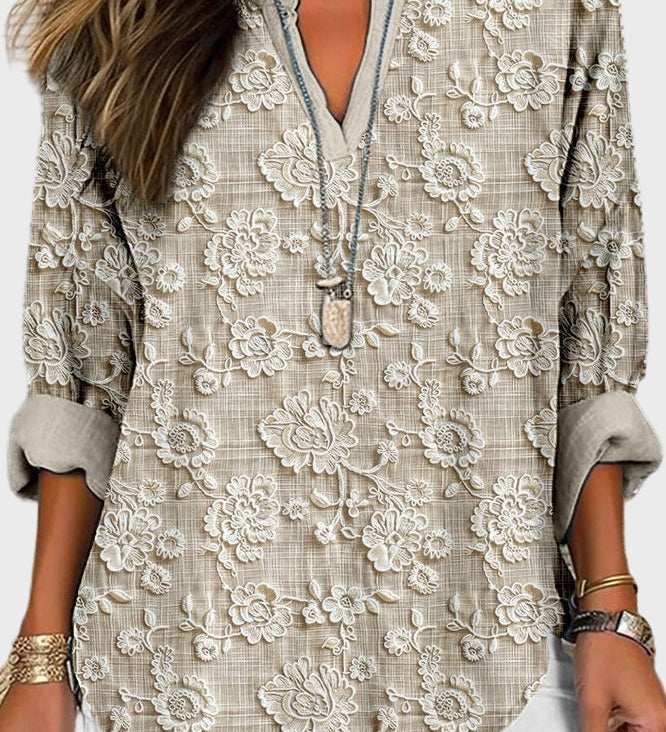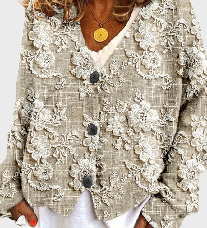 Kabelová blůza s dlouhým rukávem a elegantním vzorem