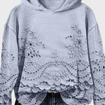 Tato mikina s kapucí z krajky zelené louky kombinuje pohodlí casual oděvu s elegancí krajky. Zvláštní odstín zelené dodává svěžest a přirozenost, zatímco kapuce a krajkové detaily vytvářejí jedinečný, moderní vzhled.