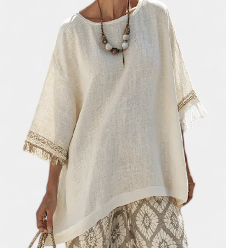 Celkový minimalistický Daisy v přírodních odstínech s oversized blůzou a širokými kalhotami pro jednoduchý a elegantní styl