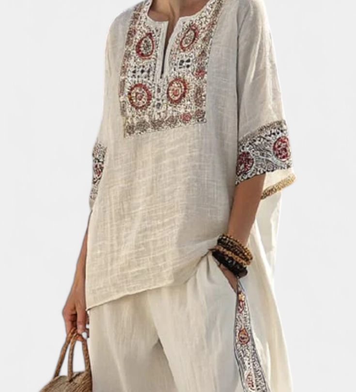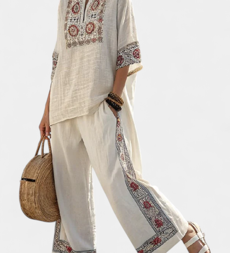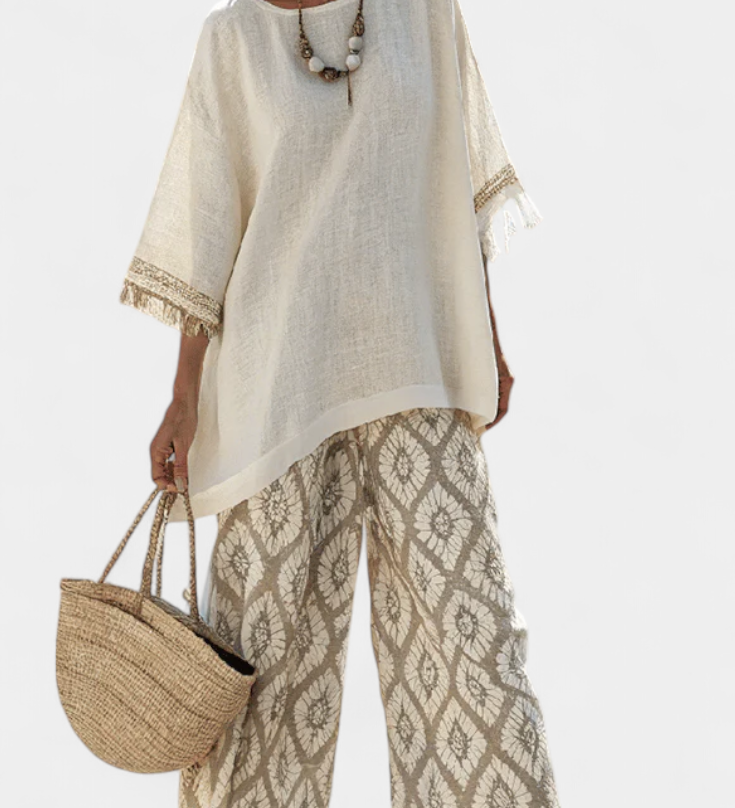 Souprava Boho Chic Daisy: Dlouhá blůza a tištěné kalhoty pro jedinečný styl