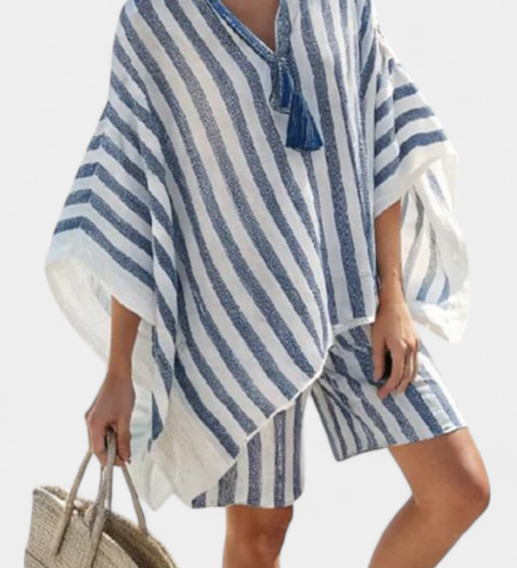 Sada pruhovaných Nancy s oversized tričkem a elegantními šortkami