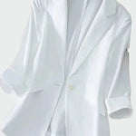 Elegantní sako s nadčasovým střihem a moderním designem. Má klopu, přední zapínání na jeden knoflík a dlouhé rukávy se dekorativními knoflíky na konci. Jeho rovný střih ho činí ideálním jak pro pracovní příležitosti, tak pro volnější chvíle. Kousek, který dodává styl a eleganci každému outfitu.