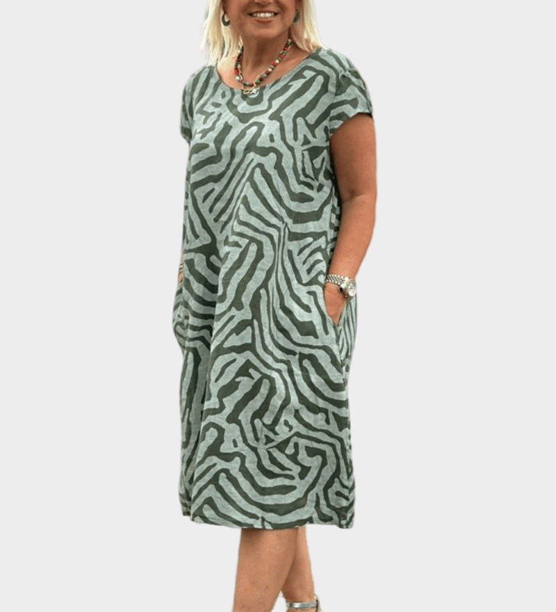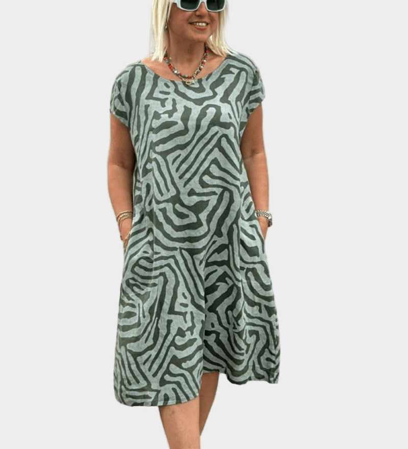 Letní šaty s kulatým výstřihem a krásným vzorem