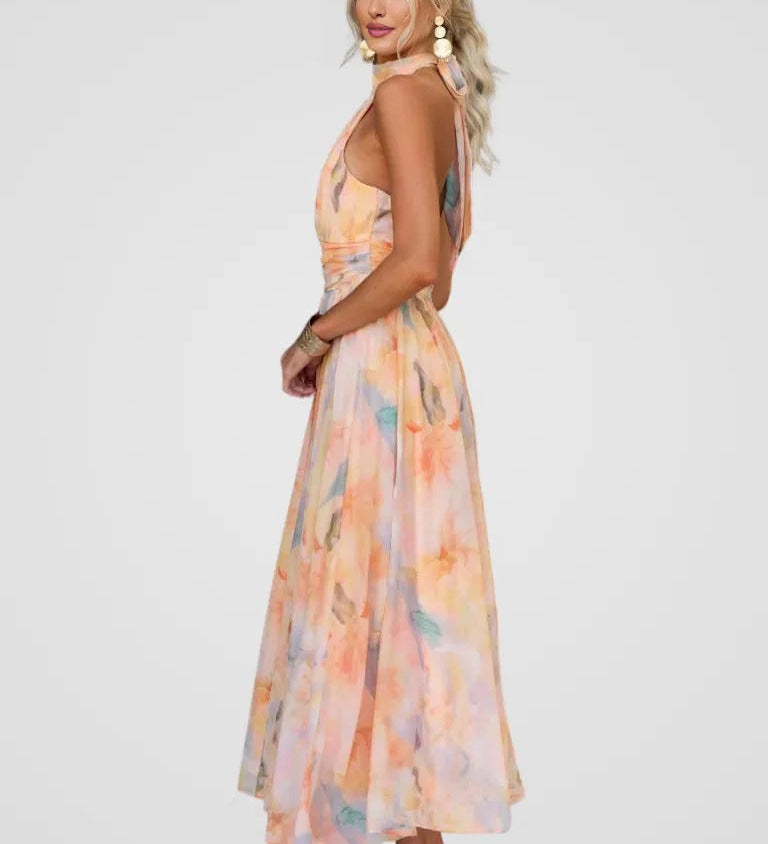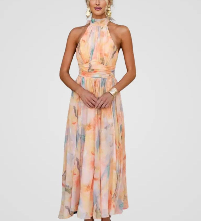 Maxi šaty s tie-dye vzorem a dlouhými rukávy