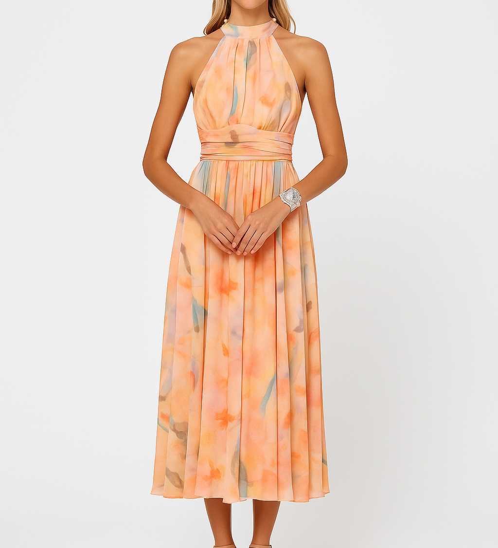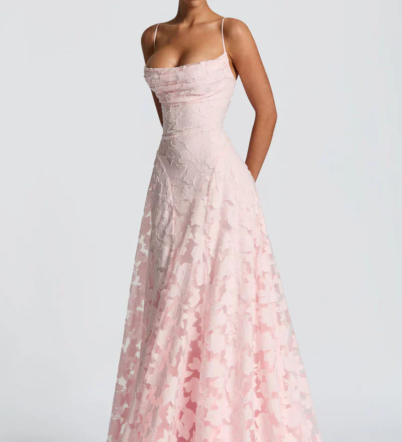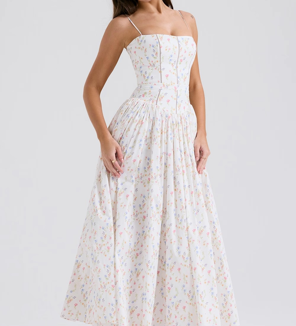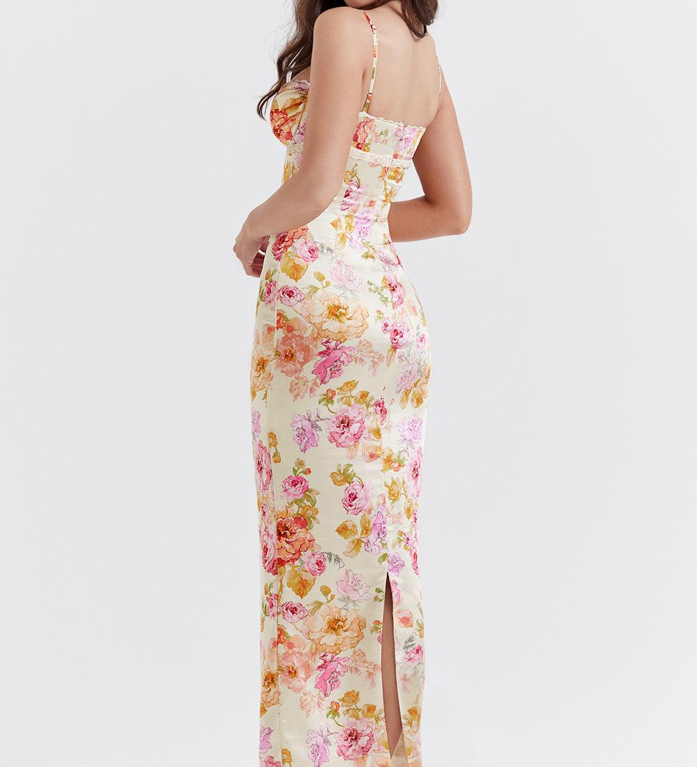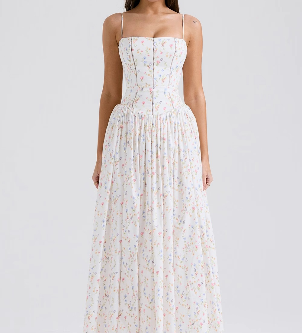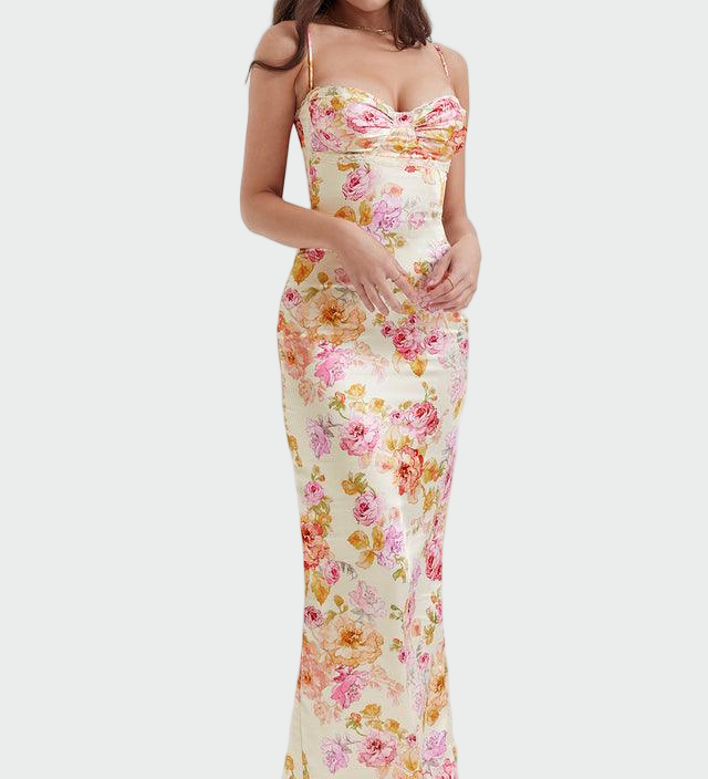 Maxi šaty s tenkými ramínky a květinovým vzorem